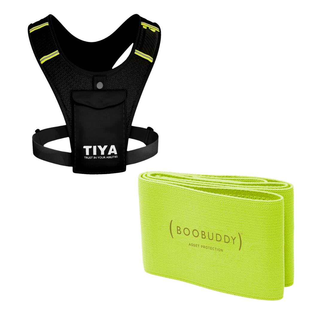 Colour: Vibrant green Boobuddy and sleek black/yellow TIYA Vest